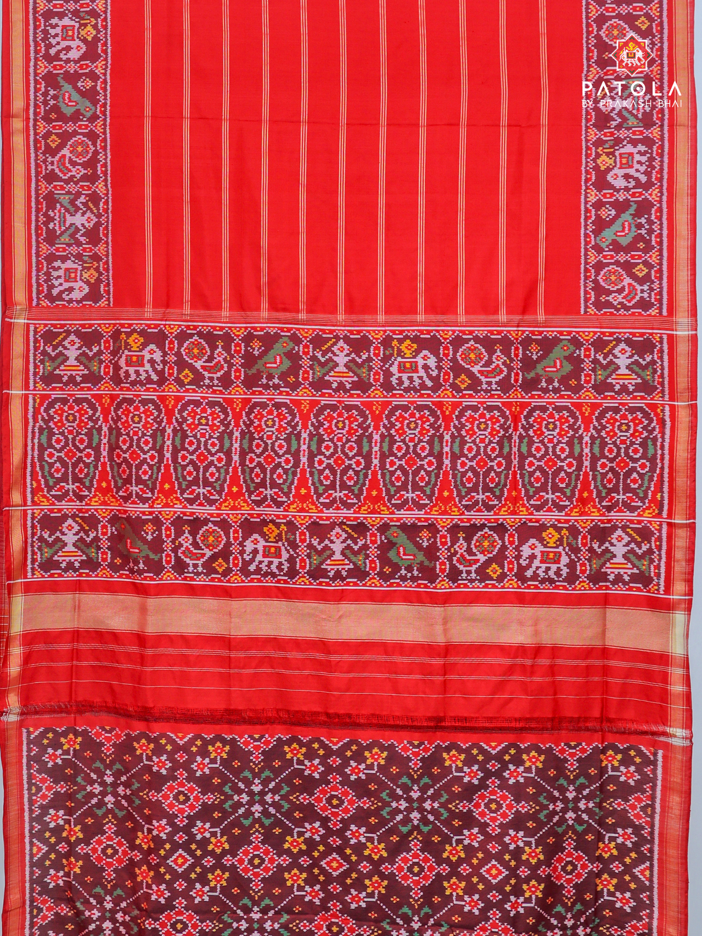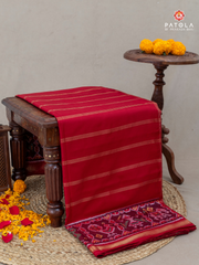 Masterpiece Plain Red with Patola Tissue Lines design with blouse patola design Semi double ikat patola saree